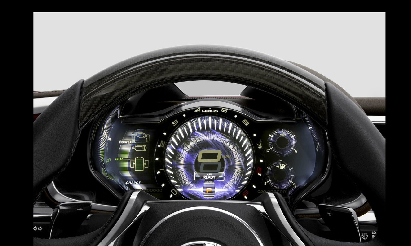 Surfaces throughout the cabin are presented in a combination of smooth leather and suede, with brushed metal trim and wood accents. The lightweight, race-inspired front seats are formed of multiple layers and repeat the interlacing curves that define the cabin interior. The racing style steering wheel is also a lightweight design and contains integrated controls and start button. Beautiful stitch details emphasize organic movement throughout the interior. The front-engine, rear-wheel drive LF-LC features Advanced Lexus Hybrid Drive, delivering both driving performance and fuel efficiency. “This thought-provoking design exercise is a stunning expression of creativity,” said Templin. “Combined with a next-generation hybrid powertrain, this concept promises a rewarding driving experience that is also kinder to the environment.”