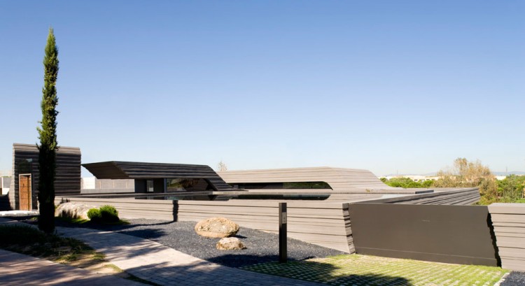 From the first moment the house clearly shows its intentions, and risky stylized forms, thanks to a subtle handling of curves that match harmoniously with their natural context without sacrificing a distinctly modern look. Horizontal lines dominate volumes, which are superimposed in layers, from a partially visible basement, forming layers that appear to emerge naturally from the ground.