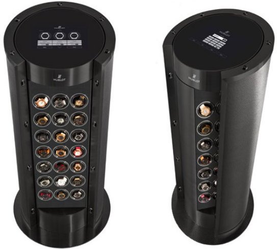 Safe maker Doettling paired with Hublot to create this cylindrical steel with lacquered semi-matte Hublot black panel inner tube safe for the ultimate watch collector. Weighing around 180 kilograms the cylindrical safe sports an inner tube that turns inside of the outer shell, with two set of winders that can hold up to 42 watches. The top end of the cabinet houses an iPad dock. The connected iPad works as the input method. Users must enter a pass code to reveal the first set of watches. The user must then enter a second security code to access the second set of timepieces. The iPad can also control other features such as the speed of the watch rotations, the direction of the spins, and total number of spins per day. The price runs $US204,664 for each cabinet.