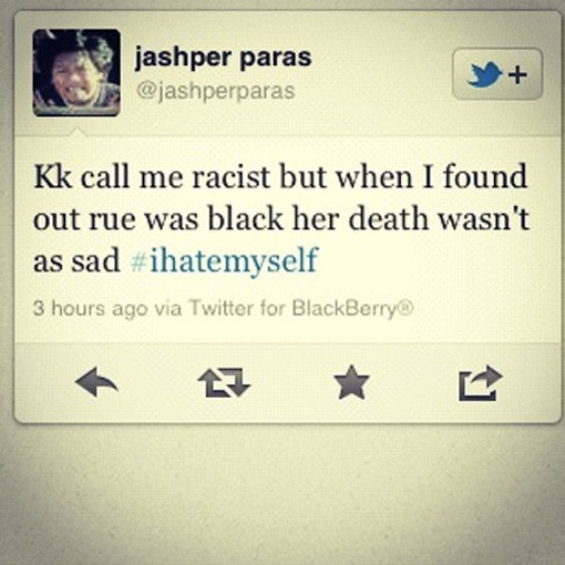 When Katie Holmes was switched with Maggie Gyllenhaal in ‘The Dark Knight’, I was a bit disappointed, because I didn’t feel as much of a connection with character, all I could think about was the switch. In the upcoming monster movie collaboration ‘The Avengers’, Edward Norton has been replaced by Mark Ruffalo, and I got drunk one night and expressed my discontent with this on twitter. However, I understand why they changed the actors, and I just have to deal with it. A while back, in the Bay Area, I noticed a bit of an uproar when the film ‘Green Lantern’ was approaching because the main character was white. Given my skin color, I still was unapologetic when explaining to angry fans that the black Green Lantern (John Stewart), wasn’t having his race changed, they just chose to tell the story of Hal Jordan. It’s not a racial issue, and there is NOTHING wrong with that. But some ignorant fans of ‘The Hunger Games’ seem to have tripped themselves up on a few details in the new movie that just have me downright perplexed.