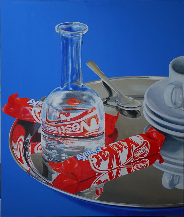 Taking a photo this clear would be a feat for many – but these stunning images are actually hand-painted or drawn. Last week the detailed pencil drawings by Scottish artist Paul Cadden caught the eye, but the exhibition at the Plus One gallery also showcases other artists creating hyper-real pictures. Explaining the aim of one of his pieces, artist Tom Martin says: “Essentially I’m trying to look for ways to create a situation whereby things are believably real, yet impossible. “The scenario here is impossible and cannot ever exist in this world at least, but we are forced to accept it.” Including three BP Portrait Award winners, the display features both portraits and still life works – though chocolate lovers may be disappointed by Cynthia Poole’s confectionery as those grabbable-looking bars are sadly unreal…