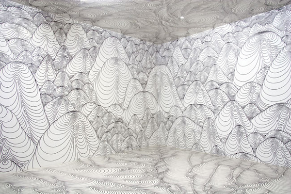 This is a collection of utterly amazing installations by Heike Weber. She draws with permanent markers on acrylic floor and walls. I can’t begin to imagine how time consuming these breathtaking installations must have been.