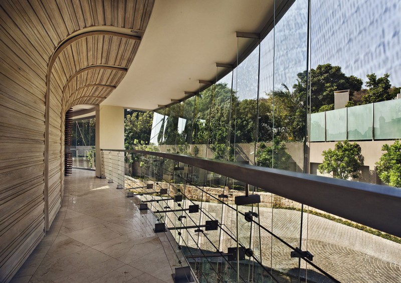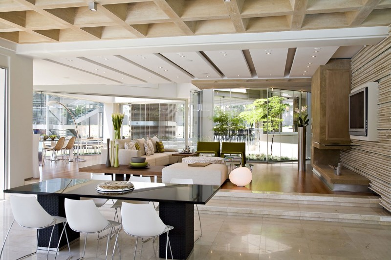 Glass House by Nico Van Der Meulen Architects: The house is situated on a 4000 sq.m site, with a total floor area of 2500sq.m. The owner requested a modern, glamorous, open plan, light-filled house with views from all rooms into the garden. The shape on the south side is a half circle, forming a horseshoe on the north side. Approaching the house form the gate the driveway is elevated to allow glimpses thru’ the house to the garden and raised water feature on the other side of the house.