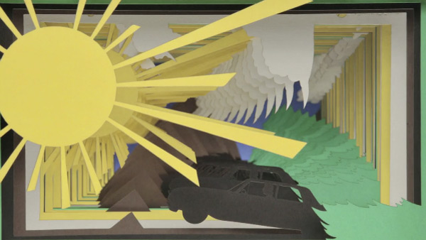 A team of nearly twenty artists, editors, directors and product assistants ushered the video into being. The group started with storyboarding and computer animation before converting the digital graphics to paper cutouts (frame by frame), photographing those 12,000 cutouts and then stitching them together into four minutes of paper animation.