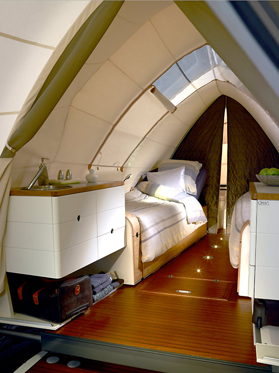 Talk about bringing camping into the 21st century. This luxurious take on the camper gives you the freedom to go, or stay, wherever you wish, while enjoying the outdoors in style. This camper is known as “The Opera”. It is a mobile holiday package combining tent accommodation, optimum traveling pleasure, convenience and comfort, and of course a modern look. This spectacular travel companion will open a world in which you can enjoy the luxuries of a comfortable boutique hotel against the backdrop of your favorite natural settings. The camper comes equipped with a kitchen, bathroom, two beds, a deck and plenty of storage to bring all that you need to have a memorable date with nature. Camping anyone?