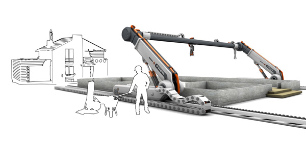 Amazing advancements have been made in 3D-printing technology, but designer Sebastian Bertram has taken it a step further, expanding the capabilities of 3D printing to large-scale 3D building. The Contour Crafter aims to keep up with demand for housing in urban areas with a construction method that combines industrial production and the technique of rapid prototyping. The robot “prints” contours of a building shell layer by layer using fast-drying concrete. Within just a couple of weeks, an entire estate could be produced.