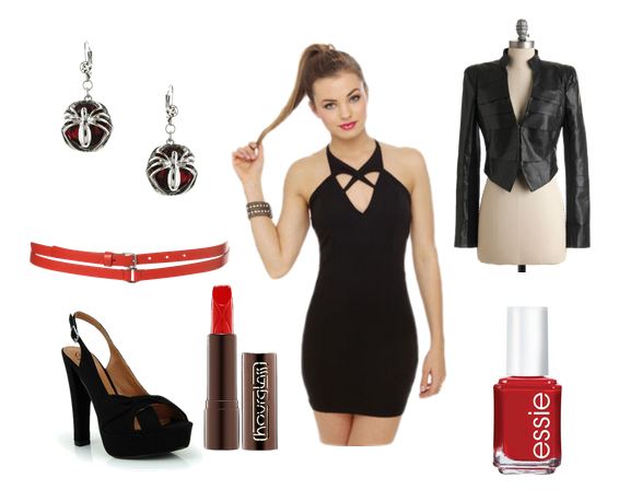 Accessorize with scarlet accents: black widow spiders are easily identified by the red hourglass on their midsections, so slip on a red patent belt. Then slick on a coat of crimson Hourglass lipstick and reference Natasha’s mother country with Essie’s “Russian Roulette” nail varnish. These spider earrings might be more reminiscent of another Marvel character, but they’re also sleek enough to be Black-Widow-esque.