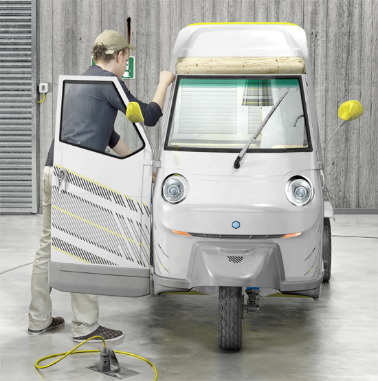 on the existing piaggio APE 50 three wheeled light transport vehicle; A model chosen for its