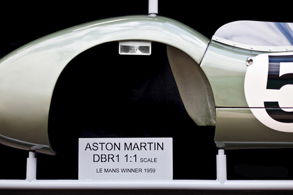 Take a look at the real work of art. It’s a model of the Aston Martin DBR1/2 that Carroll Shelby and Roy Salvadori drove to a Le Mans win in 1959. Produced by Evanta Motor Company it’s a 1:1 scale model on a parts tree – as in a life-sized, 20.8-feet long and 11.3-feet high, weighing between 1,100 and 1,320 pounds. Totally handmade in the style of an AirFix kit, the entire DBR1 bodyshell is included, as well as bits such as accurately upholstered seats, four 16-inch wire wheels with Aston Martin knock-offs, a Mota Lita steering wheel and a cap signed by Shelby and Salvadori. Each part is labeled and has an AirFix-like guide number attached as if you were were really going to pore over the instruction sheet for assembly.