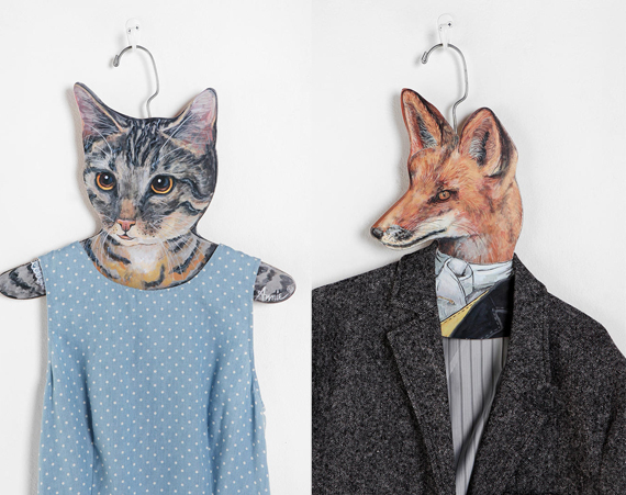 It’s bad enough when you have to share your clothing with a sibling or roommate, but now the family pet is calling dibs on your best shirt? Fortunately, these cats, dogs, and one friendly fox are only keeping your garments in place, and they will hand them over just when you need them. The silly, oversized cardboard hangers are topped with a painted animal head and a metal hanging hook. A cat in a Hawaiian shirt, a black lab in a sun dress, a fox in a sports coat? What animal loving hipster could resist?