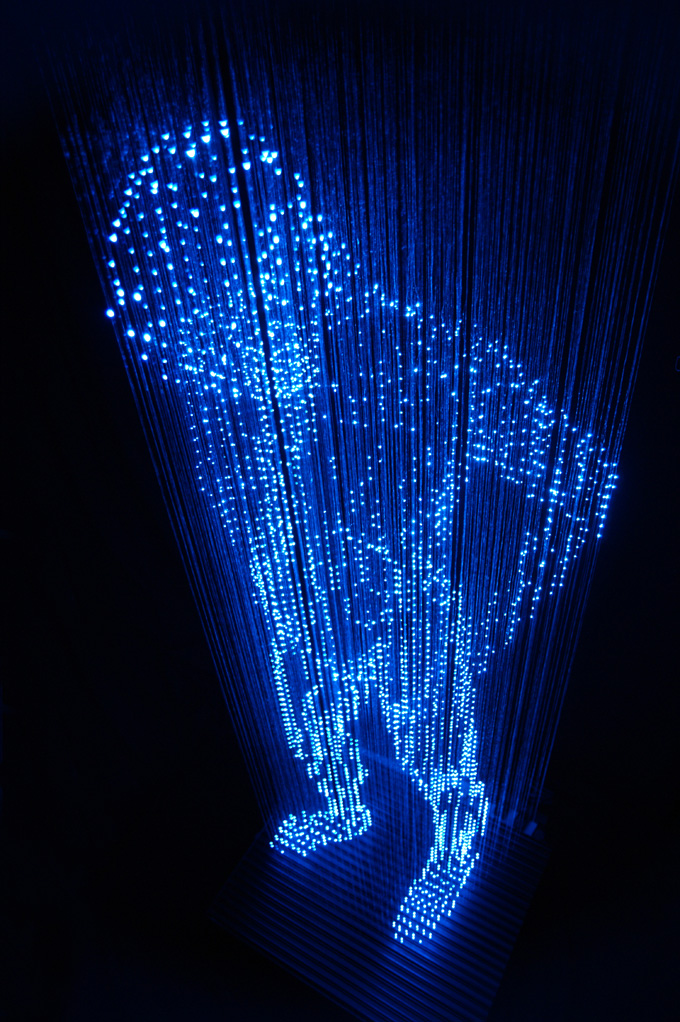 Japanese artist Makoto Tojikil is fascinated by light. He uses it in ways that create amazing illusions and out-of-this-world experiences in a subtle, inquisitive way. These pieces are known as “No Shadow”. As you can see these large animals and human sculptures are made of strands of light that seem to evoke a sense of playfulness, awe, possibility and wonder.