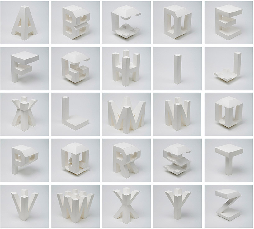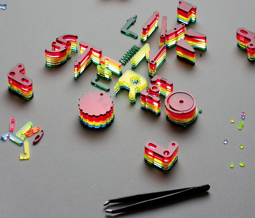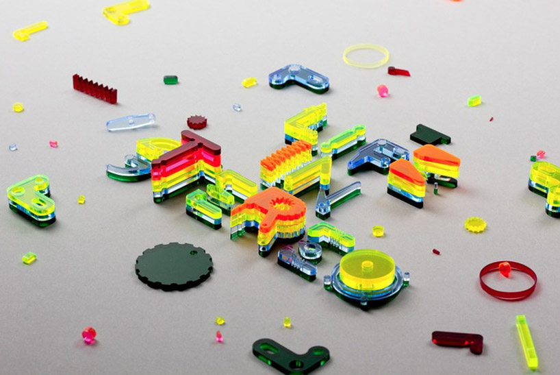 Spanish graphic design studio Lo Siento conceived the cover for japan’s +81 magazine, where the artist injects bubble wrap blisters with colored water to spell out the issue’s subject ‘next creativity’. The work is amongst a diverse range of typographical explorations – moving beyond the traditional realm of 2D to design for various identities and projects. While further below, ‘4D type’ is one concept that sees the idea of lettering to become viewable from all angles, or ’empo’, which is an alphabet created as part of an identity for an osteopathy office informed by the human body. As for the album cover art for the band ‘pinker tones’, we can see the colorful use of more raised objects that create differ type designs and typographical explorations.