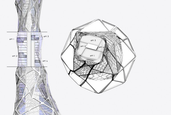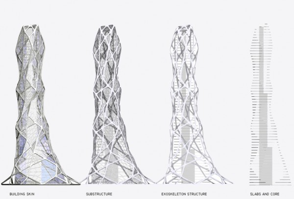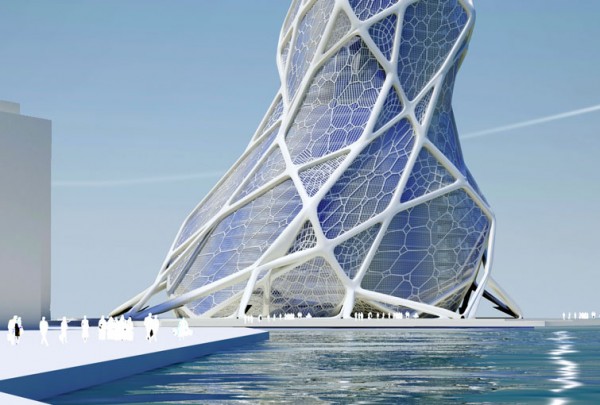 The intention of the Bionic Tower is to explore the array of ways in which natural and architectural can merge, creating the ultimate inhabitable structure. It starts at the basic level. Using references to the biological organization of the ecosystem, the design works its way from the smallest unit to the intelligence of the overall system. By use of parametric modeling of a behavioral logic the system gets constantly optimized. Designed by LAVA, this biomorphic project is inspired by nature, and attempts to conceive a structure of great lightness, efficiency and elegance, using advanced design techniques.