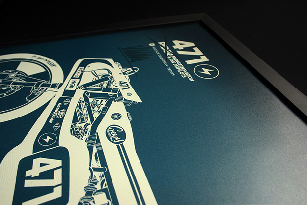 Peruvian artist Gianmarco Magnani has just released a series of prints featuring vintage motorcycles, and they’re knockouts—a mix of retro motorcycle manual illustration, cutting-edge typography and inspired line drawings. (A key influence is Katsuhiro Ôtomo’s sketches of Kaneda’s motorcycle from the movie Akira). Magnani prints his work on premium 270 gm photo paper, in limited editions of ten copies each.