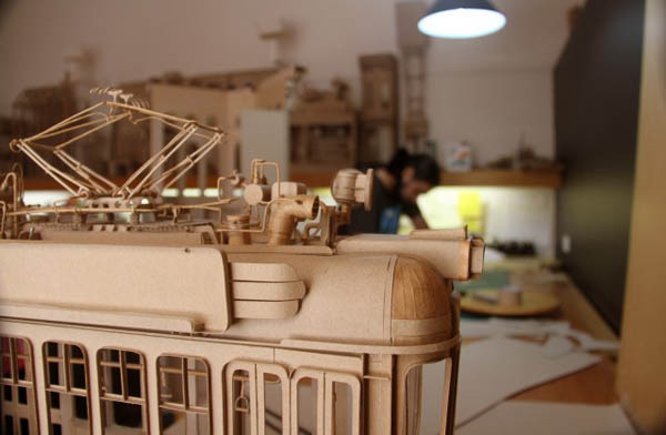 What makes these art deco styled pieces even more impressive is the fact that Agdag creates them as what he calls “paper sketches.” Working without a plan he creates each work from spontaneous inspiration, developing them as he goes. When you look at the masses of thin paper wire, switchboards, pulleys and cogs in many of his works – or the fact that when photographed the scenes look as realistic as if they’ve sprung from the screen of a vintage film-noir – this feat is really fantastic.