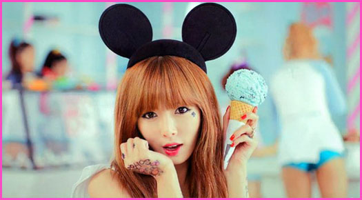 4Minute member HyunA premiered the music video for her song, “Ice Cream”. The singer made a cameo in the viral “Gangnam Style” clip back in July and fellow K-pop star Psy returns the favor in her sexy, sweets-filled video. “Ice Cream” ups the sex factor, but not before a funny cameo from Psy. The South Korean rapper infiltrates HyunA’s ice cream truck for a sweet treat, but ultimately is caught by the 4Minute singer. She rocks an urban look in the video with bright outfits and faux tattoos to match the pop song’s hip-hop lean. HyunA’s dance choreography is more suggestive than “Bubble Pop!” as she embraces a shirtless guy and moves around in bath bubbles.