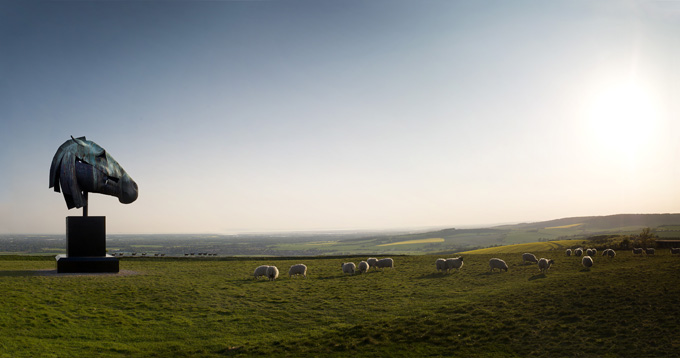 Ever since he saw a fifth-century B.C. carving of the head of a horse of Selene from the Parthenon at the British Museum he has worked at perfecting the form of the horse’s head, as well as mastering the ancient ‘lost wax’ technique. He works in clay, plaster, beaten lead and marble, and he oversees the casting into bronze himself. Fiddian-Green’s colossal, classically inspired equine heads are exhibited around the world in prominent locations, including ‘Still water ‘, the 30-foot head of a drinking horse right next to the Marble Arch in London.