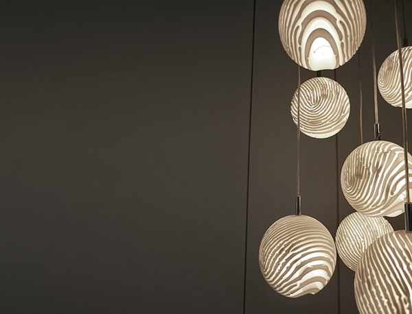 Creative ceiling pendants created by Israeli designer Dan Yeffet are called “Detail.MGX”. The lampshade is made with the unmistakable pattern of a fingerprint. He stretched his print around a sphere, its unique swirls becoming channels through which light would shine.