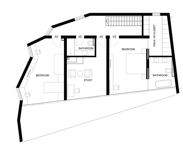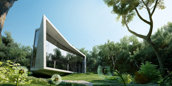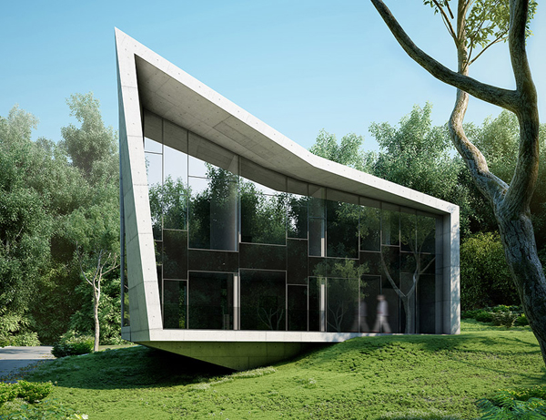 Interesting concept house “Edge House” was created by Bulgarian firm STARH Stanislavov Architects. It’s a single family dwelling located in the densely vegetated suburbia of Varna, next to the sea. The residence’s peculiar plan, reminiscent of a conch shell, ends in a southern-facing full-height curtain wall orienting all programmatic elements towards the sea.