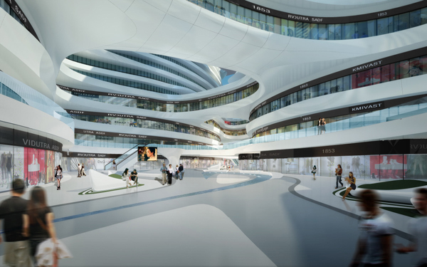 This stunning architectural project created by well know designer Zaha Hadid. The Galaxy SOHO project in central Beijing for SOHO China is a 330 000m2 office, retail and entertainment complex that will become an integral part of the living city, inspired by the grand scale of Beijing. Its architecture is a composition of five continuous, flowing volumes that are set apart, fused or linked by stretched bridges. These volumes adapt to each other in all directions, generating a panoramic architecture without corners or abrupt transitions that break the fluidity of its formal composition. Working on Galaxy for Soho China was very exciting. The design responds to the varied contextual relationships and dynamic conditions of Beijing. We have created a variety of public spaces that directly engage with the city; reinterpreting the traditional urban fabric and contemporary living patterns into a seamless urban landscape inspired by nature. The natural rhythms and flows of the city, of the environment and of the people have been integrated within the design to define its formal composition.