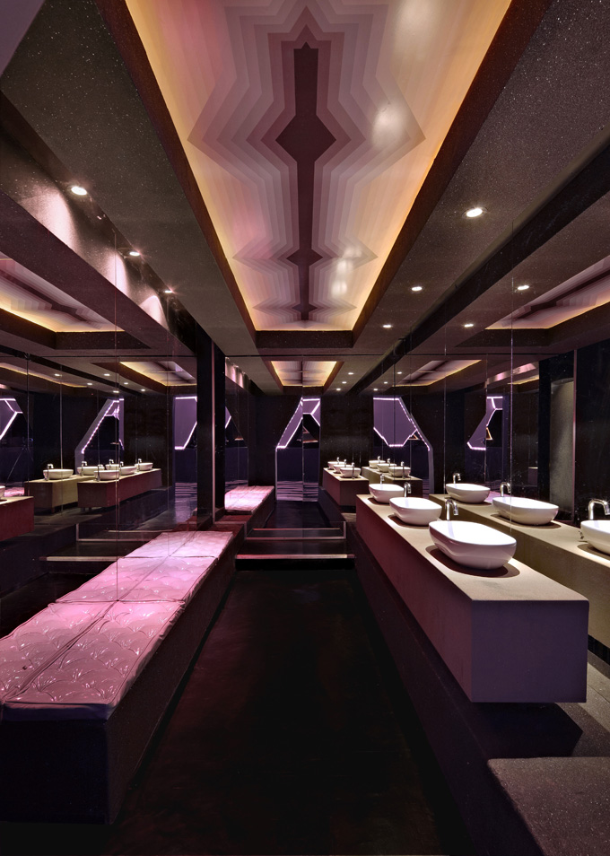 Brazilian architect Fred Mafra, no novice to night club design, was given the unusual opportunity to redesign his earlier work, the night club Josefine/Roxy. The club has been a strong player in Savassi, the night life area of Belo Horizonte, the capital of and largest city in the state of Minas Gerais in southeastern Brazil. The 955m² space has two dance floors, three bars, plus four VIP areas that can be combined into one larger VIP space. In addition, it has two lounges and smoking areas with a retractable roof. With his new design, Mafra went to town with the hexagon and triangle forms.. By using them in the honeycombed ceilings and black-and-white floors, by including padded-vinyl seating and walls, and by lighting the space with creative LED, he’s created an angularly sinful madhouse effect that is destined to help guests forget the outside world. Roxy Clubis open on Wednesdays and Fridays when the DJs play techno and e-music to a straight crowd. Josefine Club is open on Thursdays and Saturdays when the DJs play tribal and pop music.