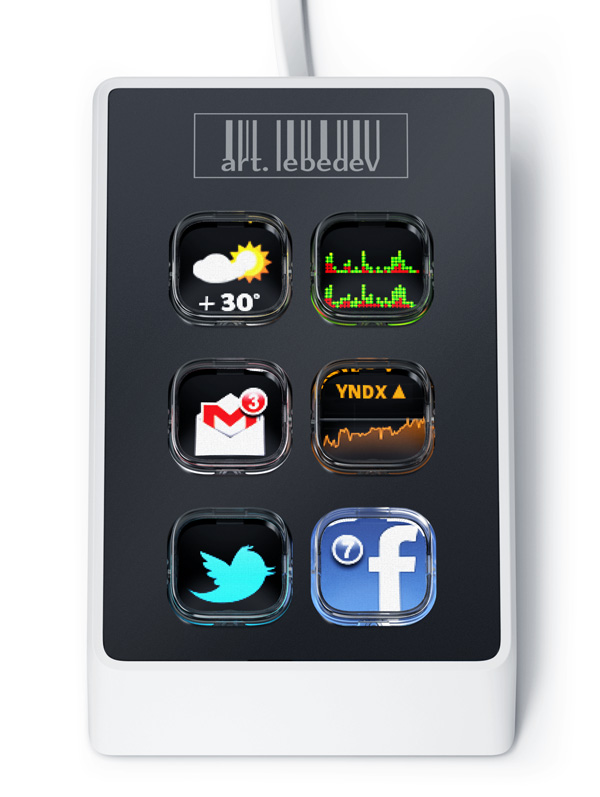 One of my favorite design studio Art lebedev is back with an update to their Optimus range of keyboards. This time around we have the Optimus Populyaris & Optimus Mini Six. While the Populyaris is a compact keyboard that configures with very many options (like English, Russian, Photoshop etc.), the mini six is an auxiliary device with six customizable keys that can be assigned any function, including displaying information related or non-related to the current program in use. Mini Six is perfect as a Tools panel, remote control, or an indicator with static or animated graphics.
