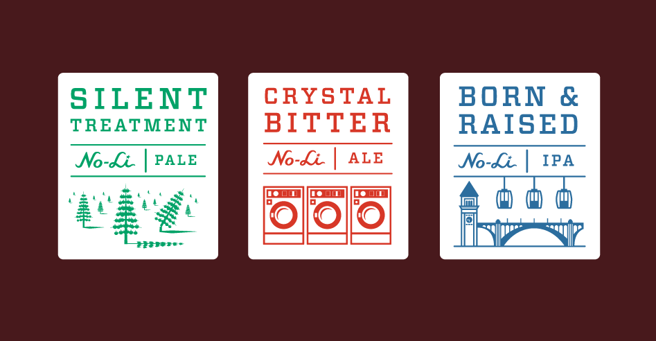 Identity and packaging for No-Li, a Pacific Northwest brewery, by Vancouver-based graphic designer Riley Cran.