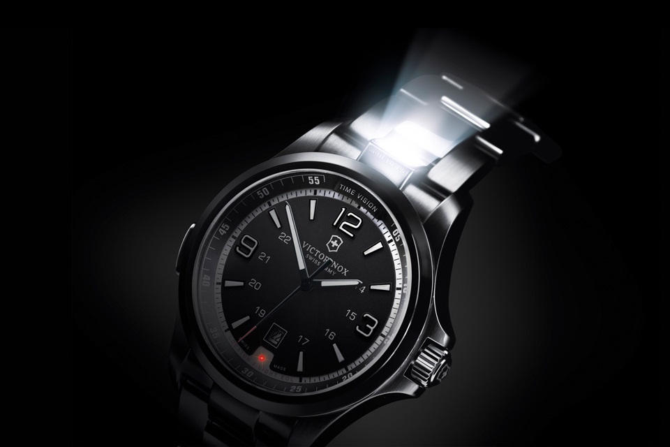 A Swiss styled stainless steel quartz watch for those who wish to have an adventurous look with executive personality, Victorinox Night Vision Watch is designed to light up the night vision with just a push button. That’s not all: pushing the control button 3 times, activates the emergency strobe mode therefore, flashing quickly for up to seven days. Another LED is available in the front to illuminate the face of the watch. The Swiss made stainless steel watch is entirely scratch resistant, triple coated anti-reflective sapphire crystal providing an unassuming experience.
