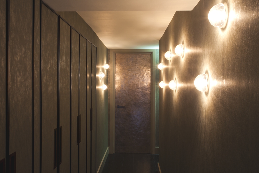 The fundamental principle for successfully creating an atmospheric interior for a room that has a dark colour scheme is to incorporate texture and pattern which brings depth, flavour and character to your overall scheme. Combining and layering contrasting textures is integral to designing an interior that will not appear flat and void of visual interest. A lack of layers can lead to an impersonal, unwelcoming space like in thiscontemporary London property. Contrast within textural differences ensures a powerful impact. By using a combination of different textures on walls and in fabrics you can make an interior with one dark palette interesting and dynamic rather than employing flat color. Layering similar tones across different mediums makes a space feel bigger. Lawson Robb often use specialist wall finishes and hand crafted wallpaper to inject vibrancy within a dark room, often with architectural metal finishes and metal coatings using cold sprayed metal. Pairing metallic elements within a dark scheme adds a sophisticated depth – hammered bronze metal cladding for the doors and mirror frames, polished plaster and metallic particles in paint finishes are all evident within the scheme. Lacquer finishes and unusual textures, such as, shagreen wallpaper, hand trawled wall finishes, grass wallpaper and snake skin are perfect to add vibrant intense touches of interest.