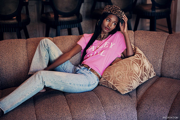 The color-saturated images were shot by The Cobrasnake – Mark Hunter – and show the girls wearing cropped knits, flirty berets, fun graphic tees and playful silhouettes. The Wildfox Spring/Summer 2013 collection, “We’re the Kids in America,” is a modern line with plenty of comfy t-shirts, maxi dresses, floral prints and ’90s graphics, furry backpack, that iconic yellow-skirt suit, macrame beanies, and gym-class sports bras.