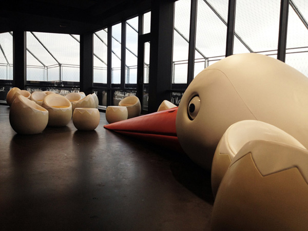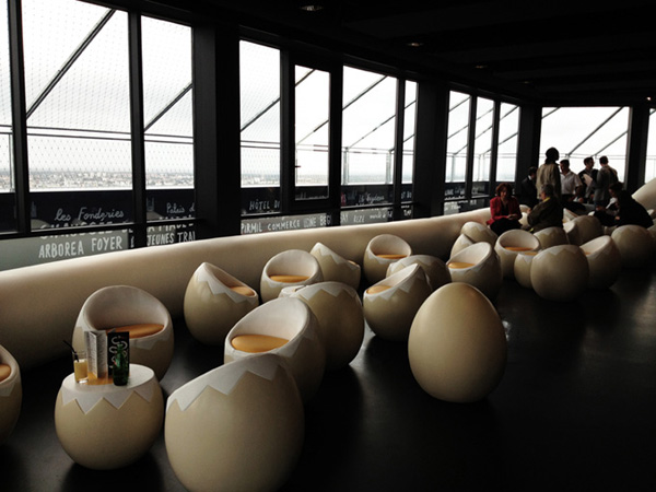Le Nid “the nest” is a whimsical themed bar located in Nantes, France. Designed by Graphic Designer Jean Jullien it was his first 3D project. Literally translating to “The Nest,” the combination of whimsical details and a scenic view overlooking the city of Nantes guarantee that we will all be flocking to Le Nid.