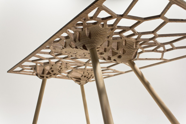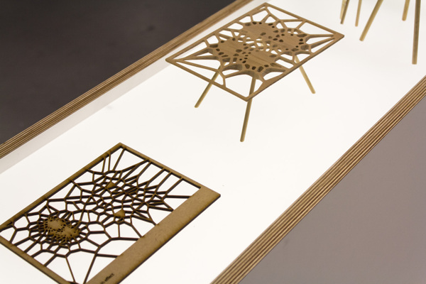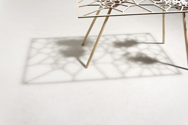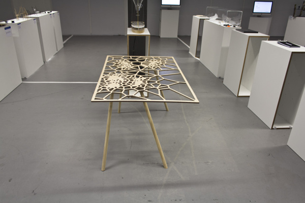 This interesting design concept was created by industrial designer from New Zealand Sam Stringleman. Fall Off is a computer generated table in which surface density is defined by the placement of objects on a virtual table through a web interface. As a virtual object, for example a laptop or coffee cup, is moved around on the table, the epicenter of the structure follows. This forms supporting density on the top surface and structural form on the underside which accommodates splayed legs. The surrounding density is controllable through a digital falloff, representing a gradual decrease. With the addition of more objects the density increases to a state of equilibrium with just enough structure to perform the required task but move it and it will Fall off.