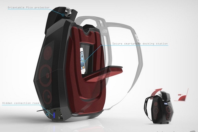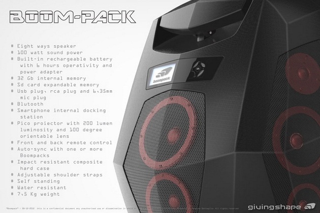 Boompack is a portable audio + projecting system. Conceived by an Italian design studio “GivingShape”, the Boompack packs everything you’d need for your party. It features 8 (100 watt) speakers and an integrated projector. The audio can be delivered using iPhone. Once the user puts an iPhone on docking station, it automatically sync the content on one or multiple Boompack. It can take commands via remote controls, bluetooth. The best part is its ingenious design that have this much possibilities. The hard case is made of impact-resistant, waterproof composite material and this whole thing can be wore using adjustable straps.
