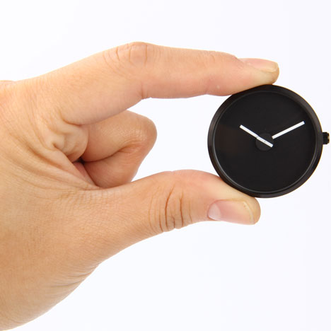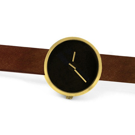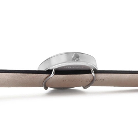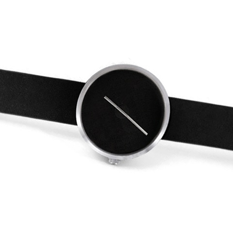 Sometimes by Italian designer Denis Guidone was produced by American brand Projects. The watch appears to have three hands: one short, one medium and one long. The medium and long hands mark the hours and minutes. However the shortest, which marks the seconds, is simply a line printed on a disk positioned at the center of the watch face. Periodically, the second ticker will align with the other two hands, joining them into one long, straight line. The Sometimes watch comes with a detachable strap that is fed through loops on the the back of the watch case.