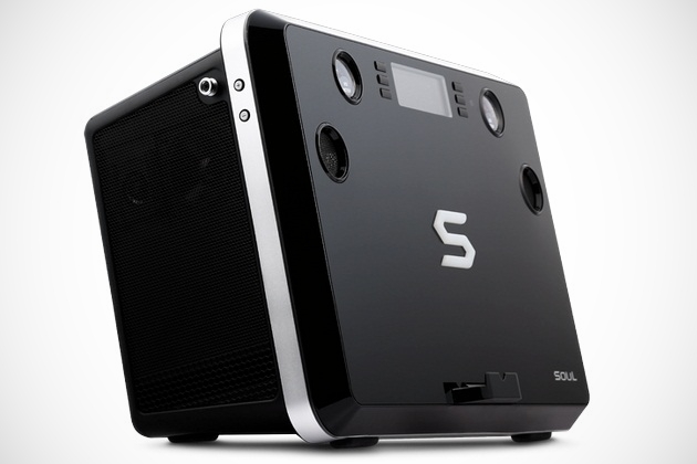 PIAB by SoulElectronics is an all-in-one multimedia speaker. It has all that you’d expect from a good wireless speaker, that why it’s titled as “Party in a box”. It is loaded with 8 speakers – Side firing dual 6.5” subwoofers, 3” midrange speakers and 1” tweeters Front firing dual 1.5” midrange drivers. Apart from Bluetooth connectivity users can place their iPhones/iPod or iPad at the dock to play sound directly. Other options include FM Radio, analog VU meter , karaoke & PA capability, Equalizer, headphone port, USB, HDMO and a mic for recording.
