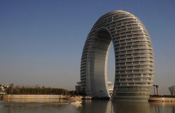 Chinese-based Sheraton hotel chain is planning an aggressive expansion in 2013, opening 30 new branches in the Asia-pacific area and four in Africa and the Middle East and 15 alone will open in China within the year. The “Sheraton Huzhou Hot Spring Resort” is perhaps the most striking of this endeavor, designed by Beijing-based architect Ma Yansong of MAD Architects. It could be described as horseshoe shaped, or maybe as a partially submerged bold serif-faced ‘O’, or even possibly a dipped elongated donut, but no matter how you describe it, the newly opened Sheraton Hushou Hot Spring Resort is not your average looking hotel.