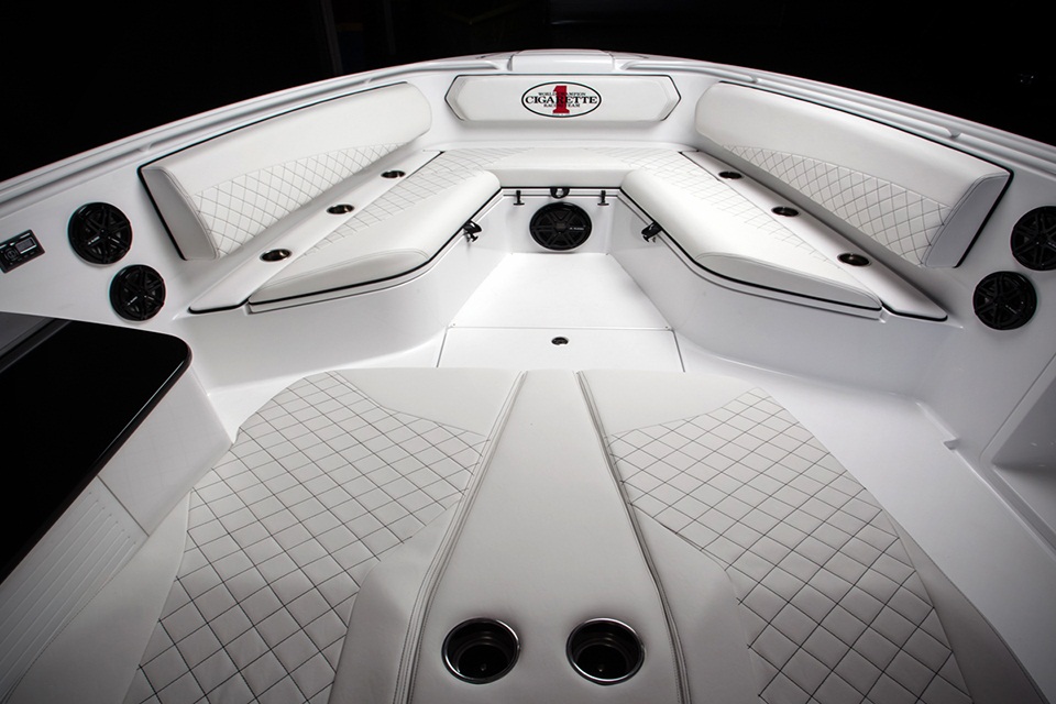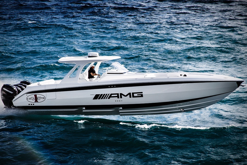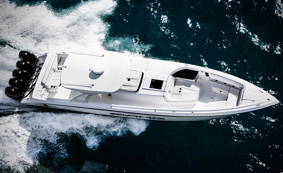 The boat boasts five Mercury Racing Verado 350SCi engines, all together generating 1750hp, enough to put it on the surface at the speed of 125 km/h. The thing that has put to alongside Mercedes-Benz G63 AMG SUV is the capacity to meet all sorts of water conditions. The Cigarette Huntress 42 doesn’t compromise at agility, speed and quick response. Apart from performance the boat has all the luxury on-deck and in-cabin amenities.