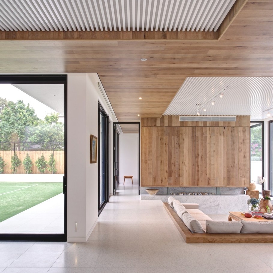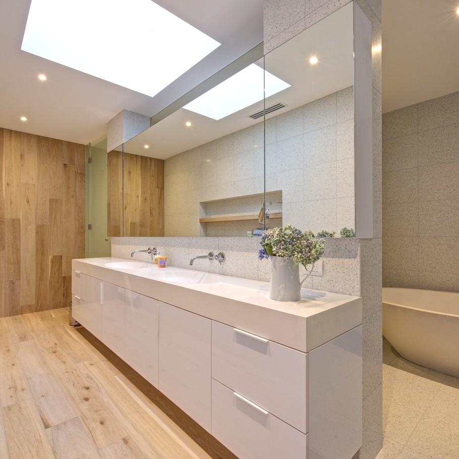 Australian interior design practice G.A.B.B.E have completed the renovation of the Brighton Escape project. The expansive, serene and textured luxury family home can be found in Australia. According to the interior designers: “A contemporary design with resounding vibrations to sooth the urban family. Like a seashell carrying the sound of the ocean, or a mirror reflecting sunlight, this space was specifically fashioned to capture and exude the warmth of the environment which surrounds it.”