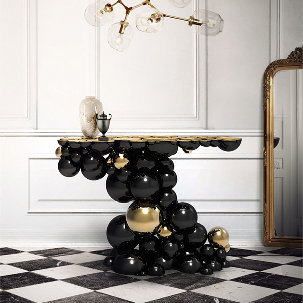 This strange cluster of glossy, black and gold spheres is an apple inspired table “Newton Console” by Tinto-based design company Boca do Lobo. The table is ideal for living rooms and hotel lobbies with a modern aesthetic. Made from aluminum and covered with a high-gloss varnish, the table reflects light and pretty much anything surrounding it crisply, adding an extra dimension to this baroque-à-la-mode console. “We design for surprise,” says Boca do Lobo’s CEO Amândio Pereira.