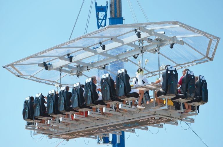 Those opting for the smaller meals will be served appetizers and pre-dinner libations. These half-hour dinners will be offered daily at 5:15, 6 and 6:45 PM. The three-course dinner with assorted wines, one-hour meals will commence daily at 8 and 9:30 PM. Dinner in the Sky has already been served in several major cities, including Paris, London, Dubai, Las Vegas, Sydney, Monaco and Brussels.