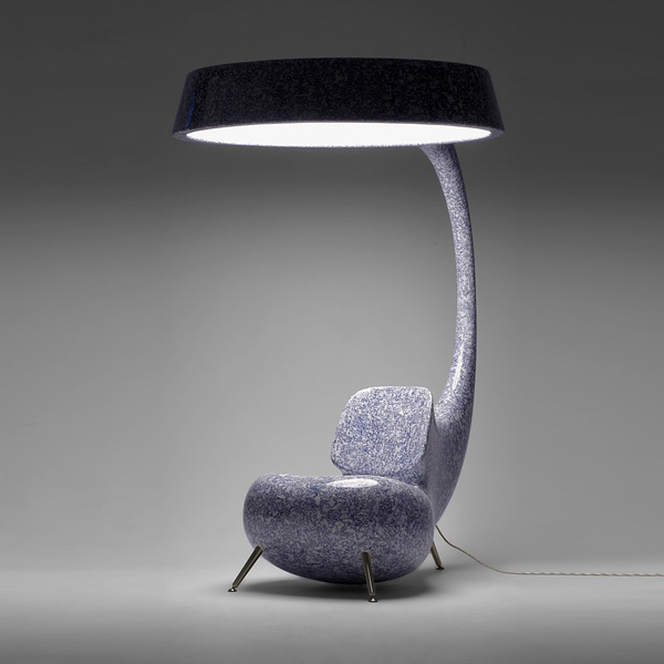 Designers at Ontwerpers have come up with Anglerfish Chair – an unique chair inspired by the creatures in the sea anglerfish that can emit light from escas to meanrik prey. Anglerfish Chair makes you feel at home when sitting and reading, because it is equipped with headlights that can give light. Use of ergonomic and back color reminiscent of a concept of color on the fish scales. Anglerfish Chair for both outdoor and indoor.
