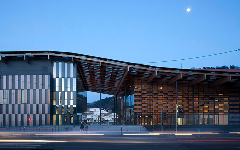 On the banks of the Doubs River in Eastern France, Kengo Kuma has designed ‘besançon art center and music city’ as an integral link among dissonant styles of the natural and built context. Known for seiji ozawa being awarded the grand prix of the besançon orchestra conductors international competition in 1959, besancon has a rich cultural history. At the edge of the city, the center connects the 1930s warehouse and 17th century vauban citadel, roof becomes landscape rather than object. The undulating form admits a generous amount of natural light through a system of glazed tiles that mimic the dappled awnings of trees. the architectural form draws from the composition of light created in the meandering watery skin of the river. The building is clad with a tiled timber skin that reveals a subtle underlayer of glazing. The translation is at once a subtle abstraction and faithful metaphor of the intensely creative hub nestled within the greenery of the riverbank.