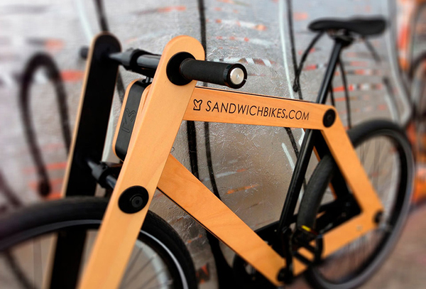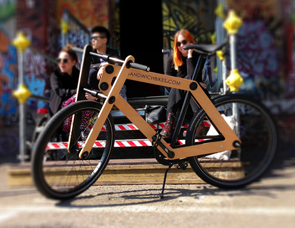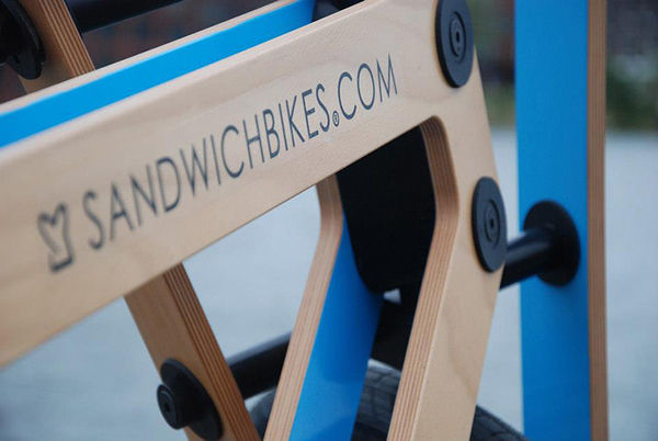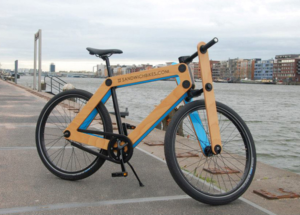 Presented during the 2013 Salone del Mobile, the Sandwichbike wooden bicycle by Dutch designer Basten Leijh will start production. Made of two wooden panels, this bicycle was inspired by the concept of flat packing and home assembly. To enable to make it a build-it-yourself product, Basten Leijh rethought most aspects of the classic velocipede. Instead of a welded frame, the vehicle is engineered as a “sandwich” of two weather coated frames of layered plywood. Bonded together by “smart cylinders”, the frames and components become a durable piece of technology.