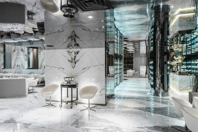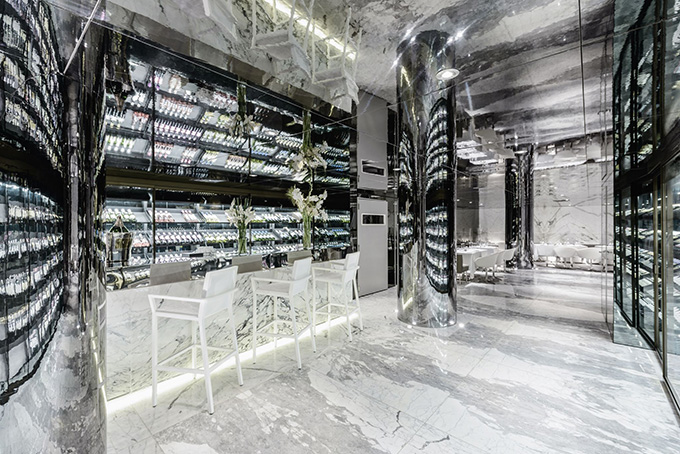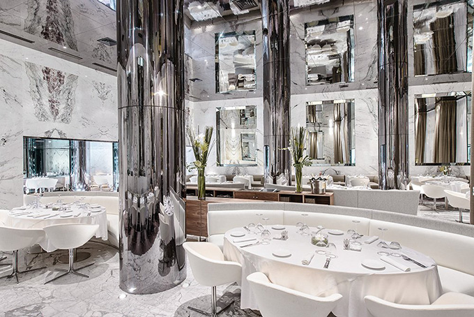 If the city is called Casablanca (White House), creating an all-white interior for a restaurant there isn’t a major creative break-through. But Christophe Pillet, the designer of the Maison Blanche (White House), reflected the omnipresent white back on itself with smoked mirrors, and created a vertigo-inducing vessel-of-a-space that forces one to look again. The 600 square-meter (approx. 6500 sq.ft.) restaurant and bar, opened in July 2012 at La Place Mohamed Abdou and La Rue du Commandant Lamy, facing the Parc de la Ligue Arave. Maison Blanche Casablanca is the baby sister of Maison Blanche Fes, opened in 2009. Maison Blanche Casablanca feels like a container, a bottle, or a jewellery box where the guest will appear as the filling, the jewel, the berry, or the decoration. Chef Thierry Vaissière’s cuisine will likely bring the guests back again for another look at themselves and their chic friends.