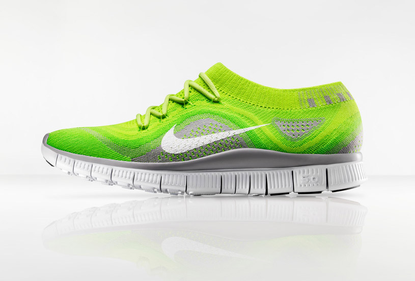 A new, more compressive NIKE flyknit construction in the shoe upper secures the runner’s foot to the shoe platform. The unique zoned performance mapping pattern of the NIKE flyknit upper is derived from insights on how pressure is exerted on the top of the foot. NIKE sport research lab scientists employed pressure-mapping technology to locate stress areas, and designers used the data to inform the new upper. Zones on the top of the foot have engineered stretch built to enable natural flex, while a tighter weave at the perimeter stabilizes the forefoot and heel. Additionally, elasticized construction fits securely around the ankle for a comfortable, secure fit. By knitting a one-piece upper, NIKE flyknit construction reduces NIKE’s typical upper waste by an average of 88 percent.
