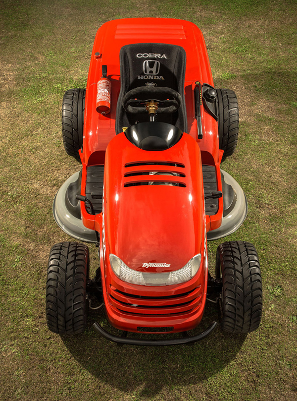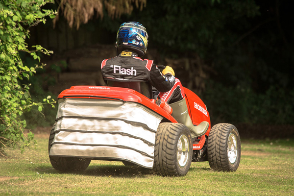 Honda UK has teamed up with British touring car championship partner, Team Dynamics, to create the world’s fastest lawn mower. The re-engineered Honda HF2620 lawn tractor is conceived from the ground-up with an all-new fabricated chassis, outfitted with a 1000cc engine from a honda VTR firestorm that produces 109 horsepower. With this, the grass trimmer can reach 0-100km/h (0-62 mph) in just four seconds, with a top speed of 208km/h (130mph). the garden toy is supplemented with a custom-made paddle shift six-speed gearbox, paired with a custom-made cobra sports seat, a scorpion exhaust system and a morris minor steering rack. Along with a bespoke suspension and wheels from an ATV, the “mean mower” still can – thanks to two electric motors on the cutter deck – mow the lawn at around 24km/h (15mph) with spinning 3mm steel cutting cable at 4000rpm.