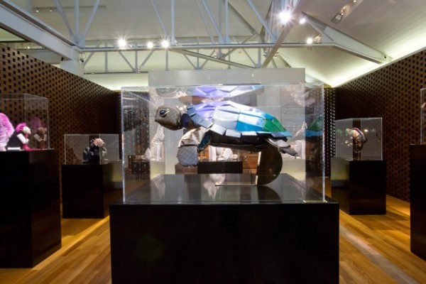 Artist Billie Achilleos has crafted 8 imaginative creatures from Louis Vuitton’s Traveling Curiosities exhibition, including a giant sea turtle out of Louis Vuitton accessories for the brand’s store in Waikiki, Honolulu. Each animal is pieced together with handbags, small leather goods, belts, wallets, and travel accessories made of Louis Vuitton’s distinct leathers and canvas.
