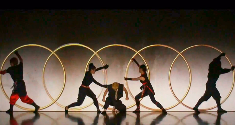 The japanese collective Enra’s latest performance ‘Fuma-Kai’ shows a group of ninja’s bringing the olympic rings to Japan created by Nobuyuki Hanabusa / Enra.