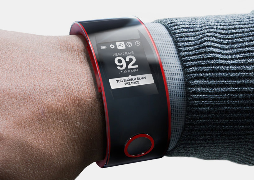 Nissan has become the first car manufacturer to create a smartwatch designed specifically for drivers of nismo tuned nissan cars. Unveiled at the 2013 frankfurt international motor show, the ‘nismo smartwatch concept’ has the capabilities to connect a driver to the car, providing them with real-time biometric data. The wearable device monitors pulse and brain activity, documenting driver performance and efficiency via a heart rate monitor. An electrocardiogram measures the intervals of the R-R rhythm of the heart and can identify early fatigue, and an electroencephalogram brainwave monitors the drivers’ levels of concentration and emotions, helping athletes get ‘in the zone’. Core body temperatures and hydration levels can also be recorded for more accurate readings. In addition, the smartwatch also accesses vehicle telematics and performance data while on track, analyzing the efficiency of the car’s average speed and fuel consumption readings.