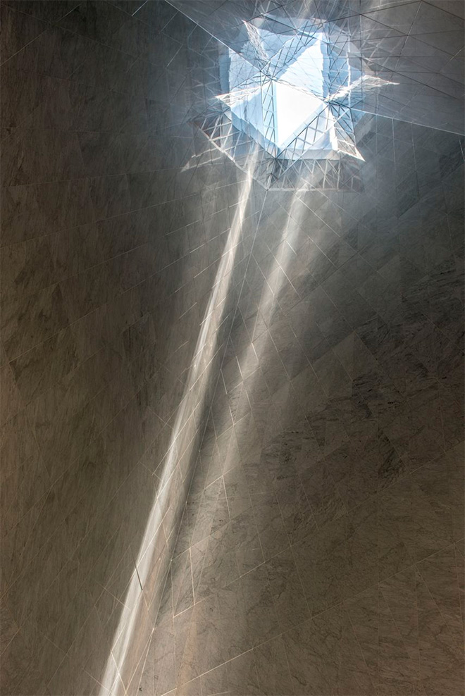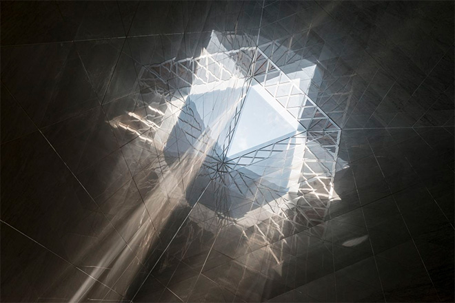 The nine-story Atrium Champagne Bar in London, designed by Foster + Partners, has been awarded “Best Bar” at the fifth UK and International Restaurant & Bar Design Awards. Arriving guests pass through the ground floor lounge, and ascend to a dedicated hotel lobby (The ME Hotel) and champagne bar on the first floor, housed within the hotel’s main spatial event – a nine-storey high pyramid, clad entirely in white marble, with a highly reflective, black polished granite floor.